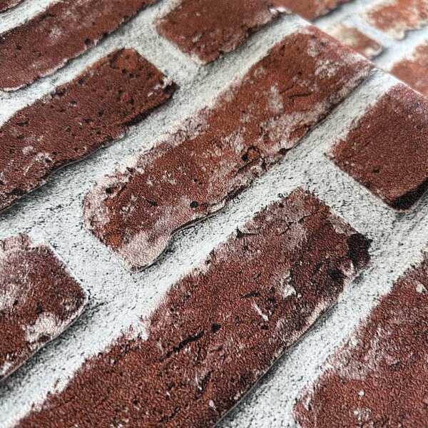 Ce papier peint propose une imitation saisissante d’un mur en briques rouges artisanales, offrant un style résolument industriel et urbain. Les briques présentent des teintes allant du brun terreux au terracotta profond, avec des variations de couleurs qui imitent l’usure du temps. Leur texture semble irrégulière et rugueuse, accentuée par des petites cavités et des bords légèrement effrités pour un effet trompe-l’œil réaliste.